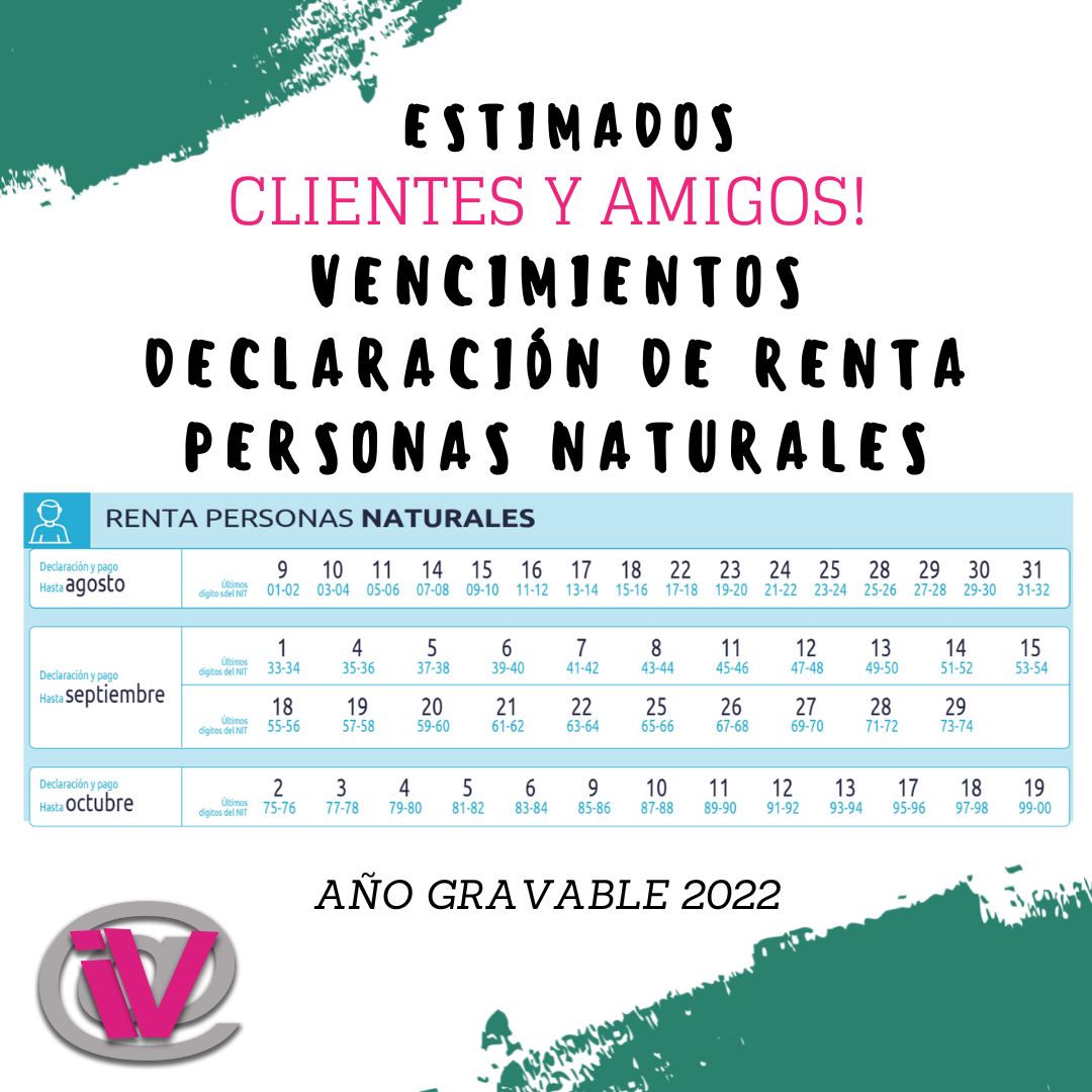 Vencimientos para presentación y pago de la Declaración de Renta Personas Naturales por el año gravable 2022