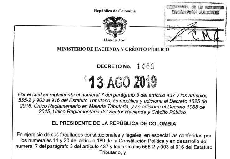 Por el cual se reglamenta el numeral 7 del parágrafo 3 del artículo 437 y los artículos 555-2 y 903 al 916 del Estatuto Tributario, se modifica y adiciona el Decreto 1625 de 2016, Único Regllamentario en Materia Tributaria, y se adiciona el Decreto 1068 de 2015, Único Reglamentario del Sector Hacienda y Crédito Público.