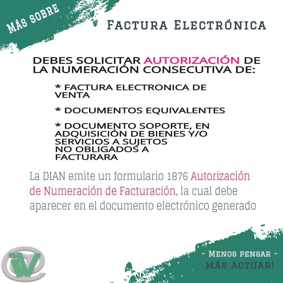 La DIAN emite un formulario 1876 Autorización de Numeración de Facturación, la cual debe aparecer en el documento electrónico generado.